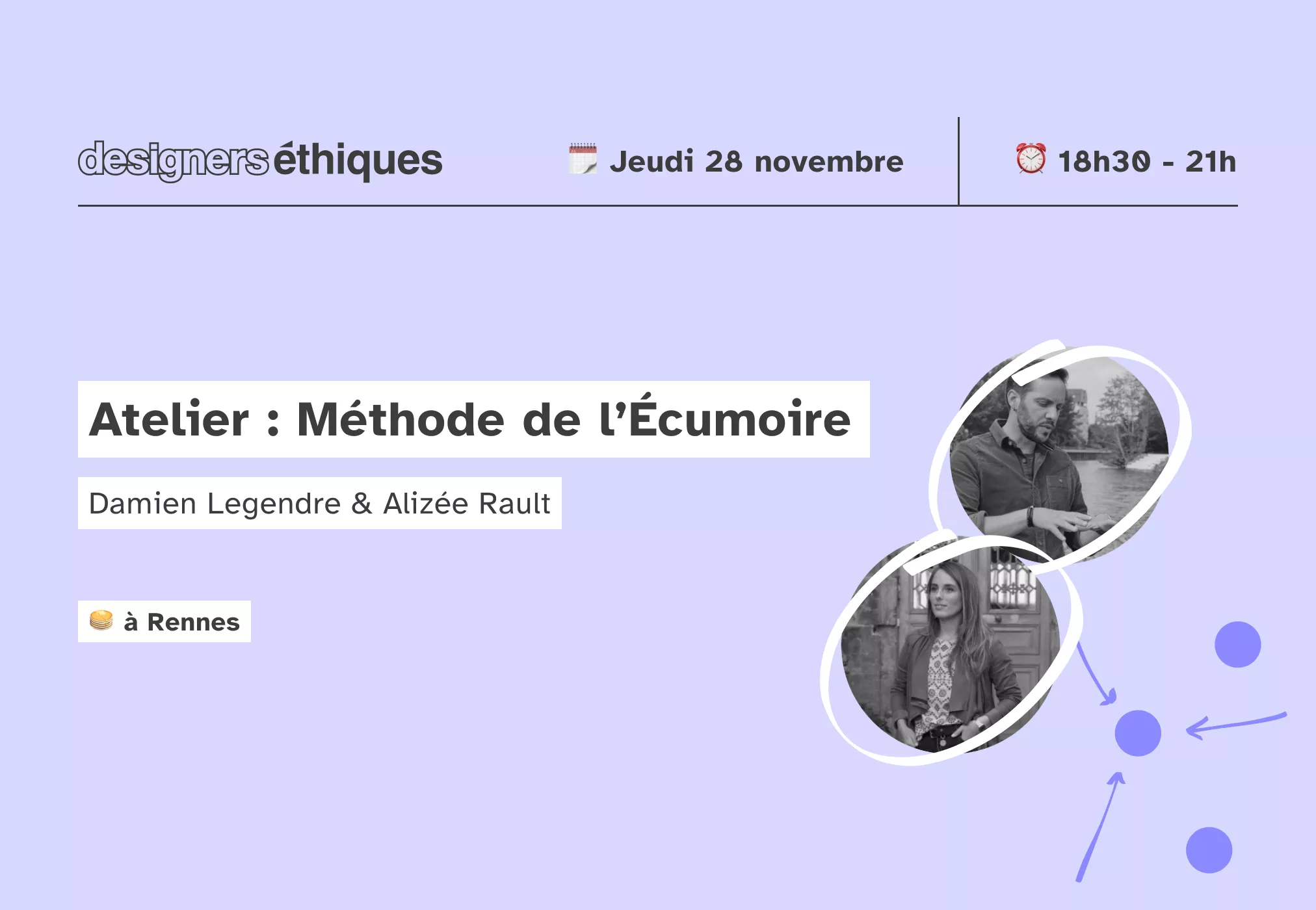 Si découvrir une méthode d’idéation pour vous aider à concevoir un projet mesuré et qui fait sens vous intéresse, réservez votre soirée du 28 novembre 2024. De 18h30 à 21h, la branche rennaise des Designers Éthiques proposera un atelier dédié à la méthode de l’Écumoire.