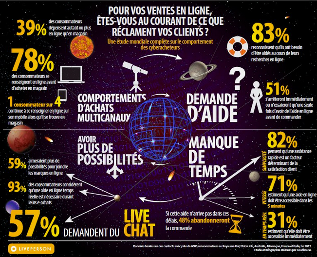 L'étude de Loudhouse nous confirme ce qui n'est un secret pour personne ou presque : l'acte d'achat devient multicanal. En effet, dans 78 % des cas, les internautes s’informent en ligne avant d'acheter en magasin et un quart d'entre eux continuent de se renseigner jusque dans les rayons de la boutique, depuis leur smartphone. On peut en conclure que la majorité des e-acheteurs ont donc besoin d'être aidés et guidés lors de leurs achats.