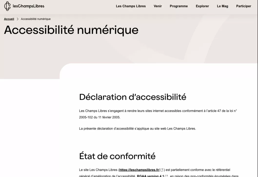 - la page accessibilité (comprenant la déclaration d’accessibilité),