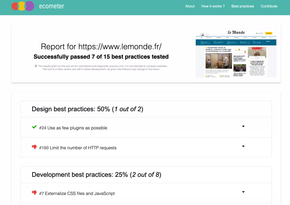 En parallèle de la sobriété numérique, l’éco-conception consiste à limiter l’impact des sites Internet. Si les sites Internet représentent un faible pourcentage dans la pollution générée par le numérique par rapport aux outils utilisés pour utiliser Internet, agir sur leurs poids n’est pas vain.