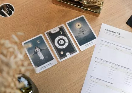 À l’image d’un jeu de tarot ésotérique, Divination UX est un jeu de cartes, basé sur une méthode scientifique, qui prédit l’avenir de vos services / produits (ou plutôt les usages qui en seront faits).