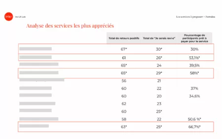 L’analyse de toutes les réponses a permis d’identifier les services les plus prometteurs, avec les meilleures chances de satisfaire les utilisateurs : ils sont utiles, différenciants et monétisables.
