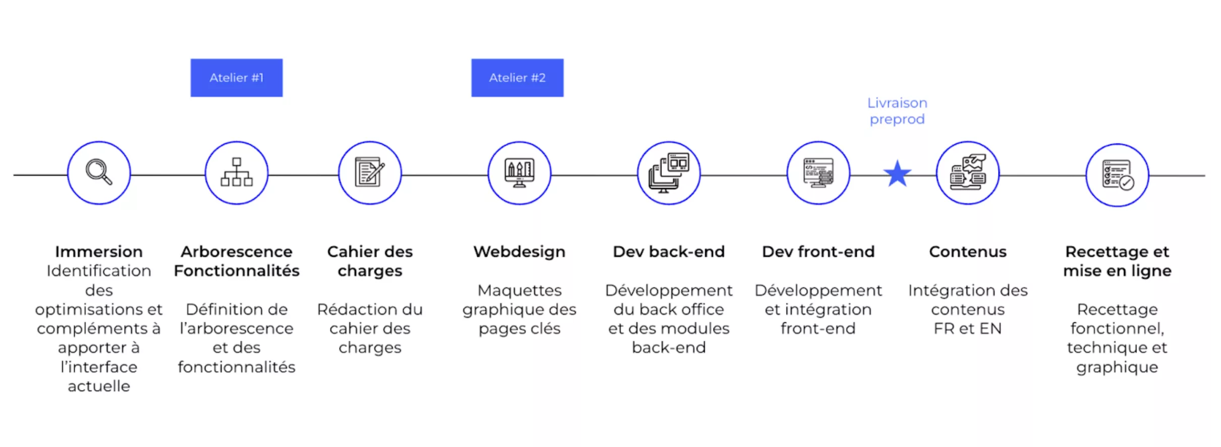 L’enjeu principal de cette refonte était essentiellement commercial en développant le parcours produits, selon les différents buyers personas. Il y avait également des attentes en termes de marque employeur et un besoin de proposer un site multilingue pour ouvrir le marché à l’international.