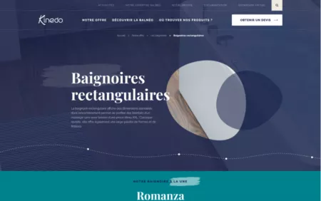 Le site a été pensé dans un esprit cocooning tout en respectant le configurateur de devis désiré par le client. Les visiteurs sont ainsi guidés “en douceur” vers la page devis du site où ils peuvent choisir et personnaliser le type de baignoires proposées, qu’elles soient ”d’exception”, “d’angle et asymétriques” ou “rectangulaires”.