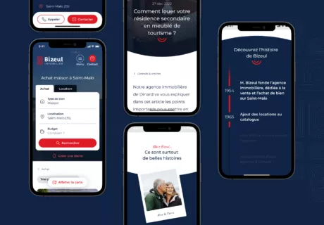 En 2023, nous avons réalisé la refonte du site de l’agence immobilière malouine, Bizeul Immobilier. En attendant la publication de l’étude de cas, découvrez quelques illustrations du projet.