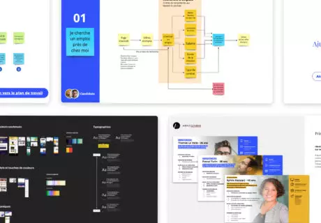 La démarche a débuté par une phase d'immersion et de définition des parcours utilisateurs en challengeant l'arborescence existante. En effet, l'idée n'était pas seulement de faire un "beau" site, mais de comprendre pourquoi un candidat abandonnait sa démarche.