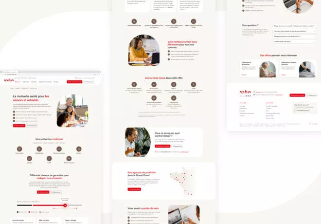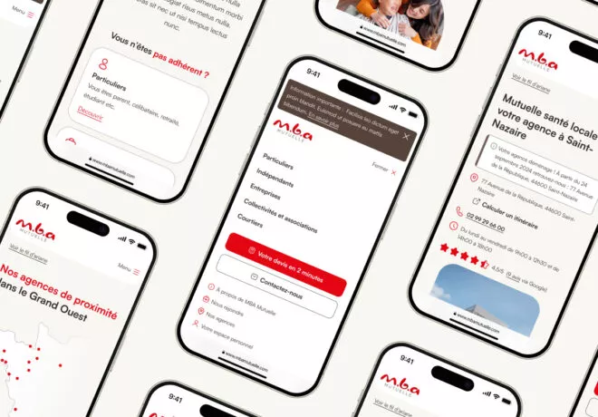 Nous avons réalisé la refonte du site de la mutuelle de proximité, MBA Mutuelle, présente dans le Grand Ouest. En attendant que l’étude de cas soit prête, découvrez quelques images du projet.