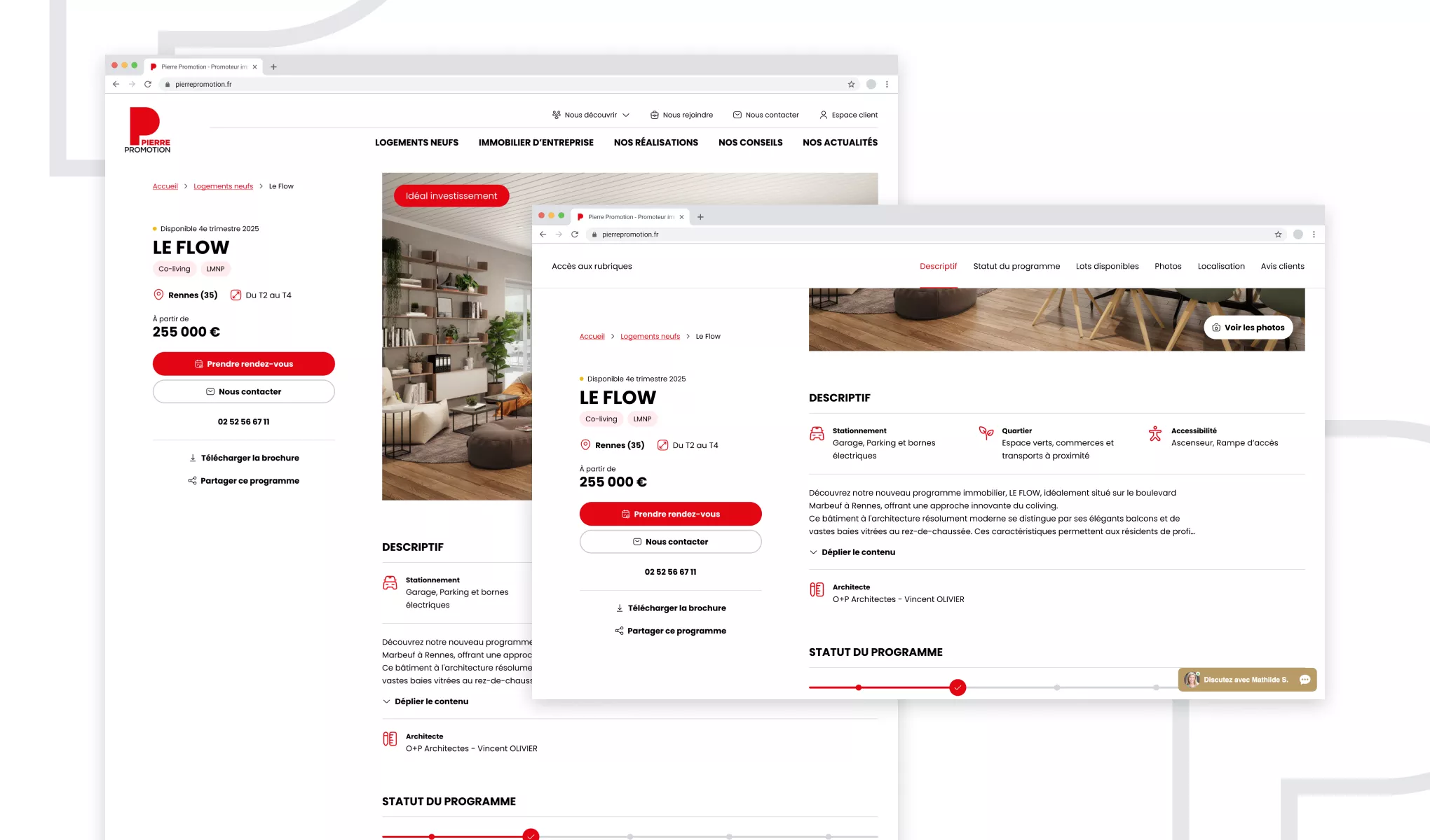 Pierre Promotion, promoteur immobilier en Bretagne et en Pays de la Loire, a lancé une recherche de prestataire pour refondre son site Internet. L’objectif était de le rendre plus moderne, d’en améliorer l’expérience utilisateurs et, surtout, de se différencier des sites des concurrents.
