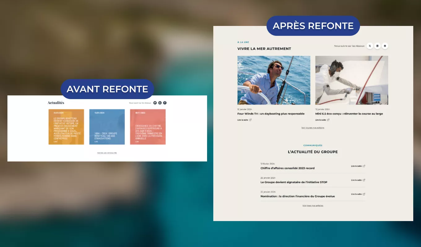 Il y a notamment eu un enjeu autour du lien fait avec les autres sites du groupe BENETEAU, en affichant, par exemple, des actualités externes.